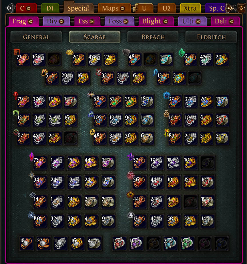 ![]() I am mostly using Harbi, Ambush, Domination and Essence. I have high investment in Atlas passives for scarabs, so I find a ton of them every single map. They're actually fantastic for SSF since I may not want to respecc my tree every time I need something from a specific league mechanic (like e.g. Blight or Ultimatum). Stuff I have no use for I can 3:1 and get a shot at high value scarabs like Seer, Divination of Completion, guaranteed Trialmaster etc. You get a ton of leverage out of those scarabs and for many of them you don't even need atlas investment to function properly. It's awesome The opposite of knowledge is not illiteracy, but the illusion of knowledge.