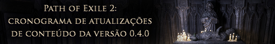 Continuamos dentro do cronograma de lançamentos de quatro meses e planejamos lançar a atualização de conteúdo 0.4.0 no início de dezembro. Em breve, revelaremos a data de lançamento e a transmissão ao vivo, então fique de olho nas novidades. A Liga Ascensão do Abissal, que está em andamento, terminará em algumas semanas. Após o término, seus personagens e itens serão migrados para a liga de acesso antecipado Padrão ou Hardcore. Como não haverá exclusões, assim que a migração for concluída, você poderá jogar com seus personagens na liga de acesso antecipado Padrão ou Hardcore. Estamos muito ansiosos para mostrar a vocês o que temos preparado! Fiquem ligados! |