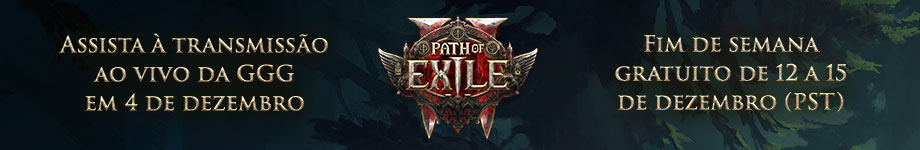 A transmissão ao vivo da GGG começará às 11h do dia 4 de dezembro (PST), ou dez. 04, 2025 2:00 PM (GMT-5) no seu fuso horário, em twitch.tv/pathofexile! Durante a GGG Live, abordaremos todos os detalhes da próxima atualização de conteúdo para o Path of Exile 2. Após a transmissão ao vivo, Jonathan e Mark responderão às suas perguntas em uma sessão de perguntas e respostas com ZiggyD, seguida pela apresentação das notas da atualização. Como sempre, os Twitch Drops estarão disponíveis para transmissões ao vivo, e a recompensa será anunciada em breve. Cotransmissões são bem-vindas!