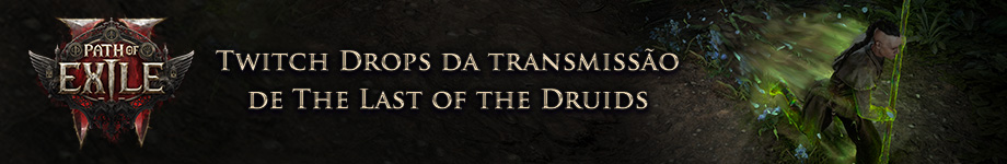 Assista à revelação ao vivo de The Last of the Druids www.twitch.tv/pathofexile na quinta-feira, dia 4 de dezembro (BRT), e você poderá ganhar o efeito de cambalhota evasiva Verdejante por meio dos Twitch Drops!