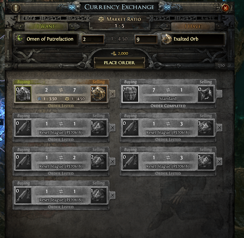 Currency exchange bugged with private league trades in standard