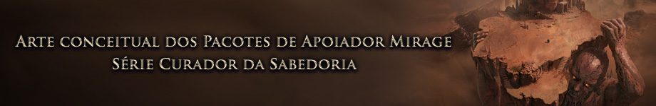 Com o lançamento da Liga Mirage, apresentamos dois novos pacotes de apoiador. Um deles é a série Curador da Sabedoria, que inclui uma seleção de microtransações inspiradas no erudito do deserto e seus pergaminhos mágicos. Reunimos algumas artes conceituais para este pacote de apoiador na postagem de hoje.